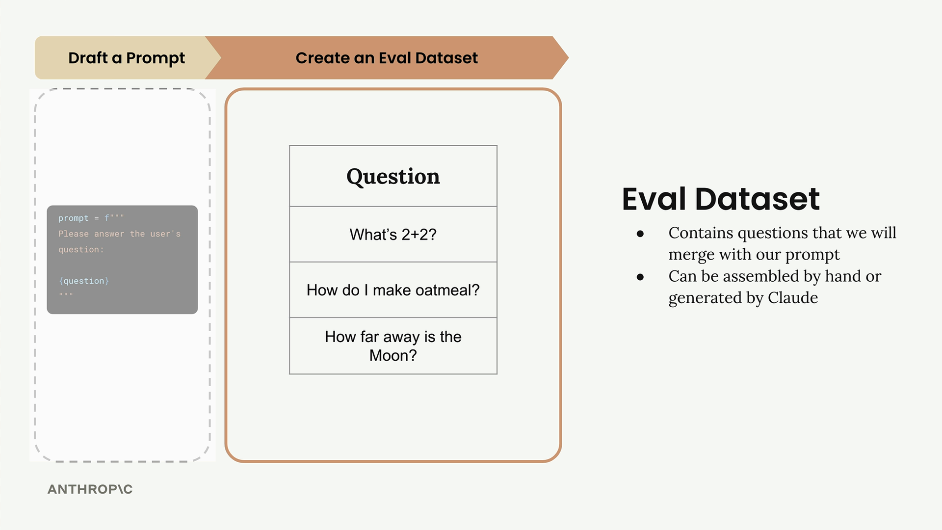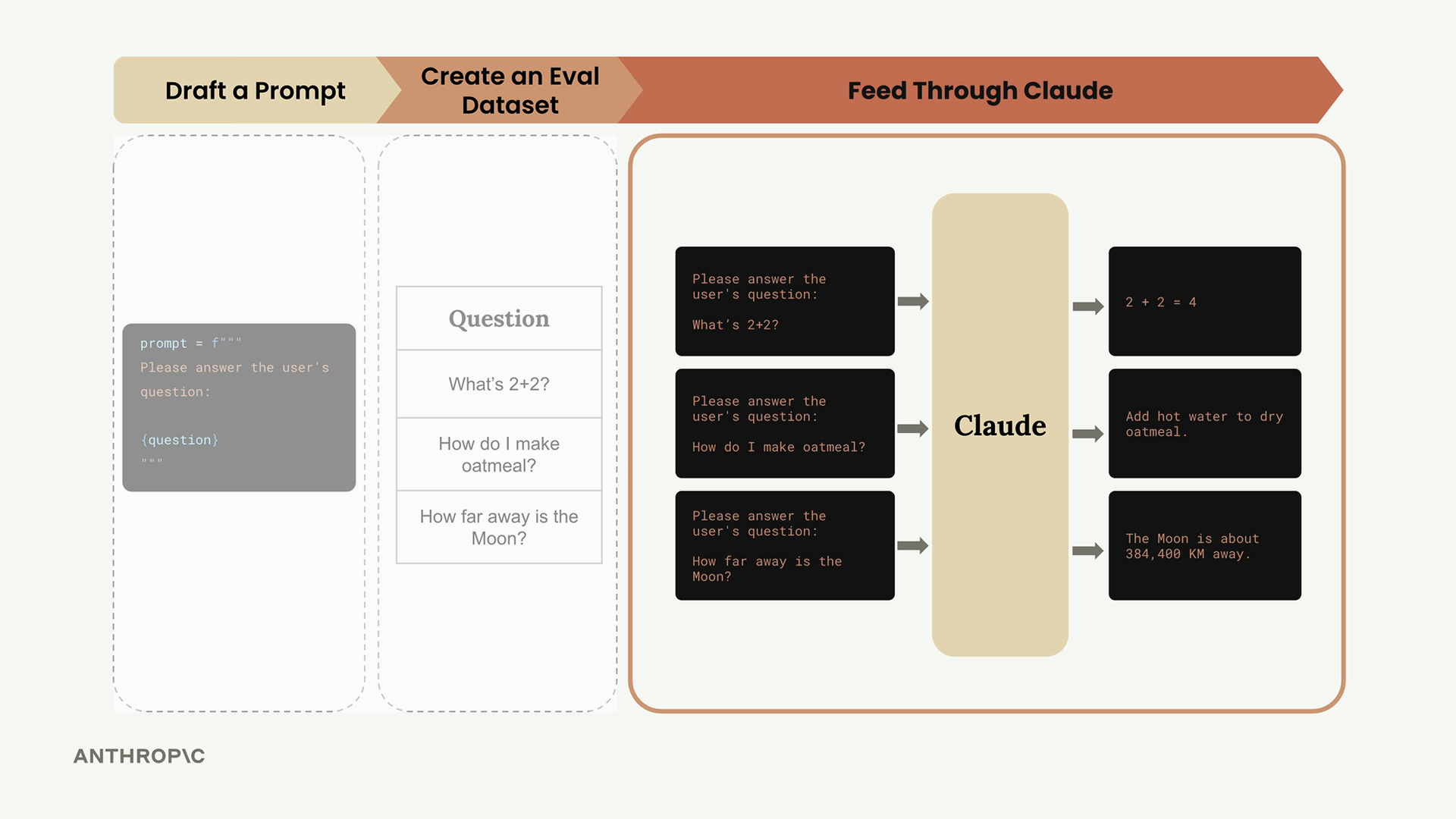 데이터셋의 각 질문을 프롬프트 템플릿과 합쳐서 완전한 프롬프트를 만든 다음, 각각을 Claude에 전송하여 응답을 받습니다.