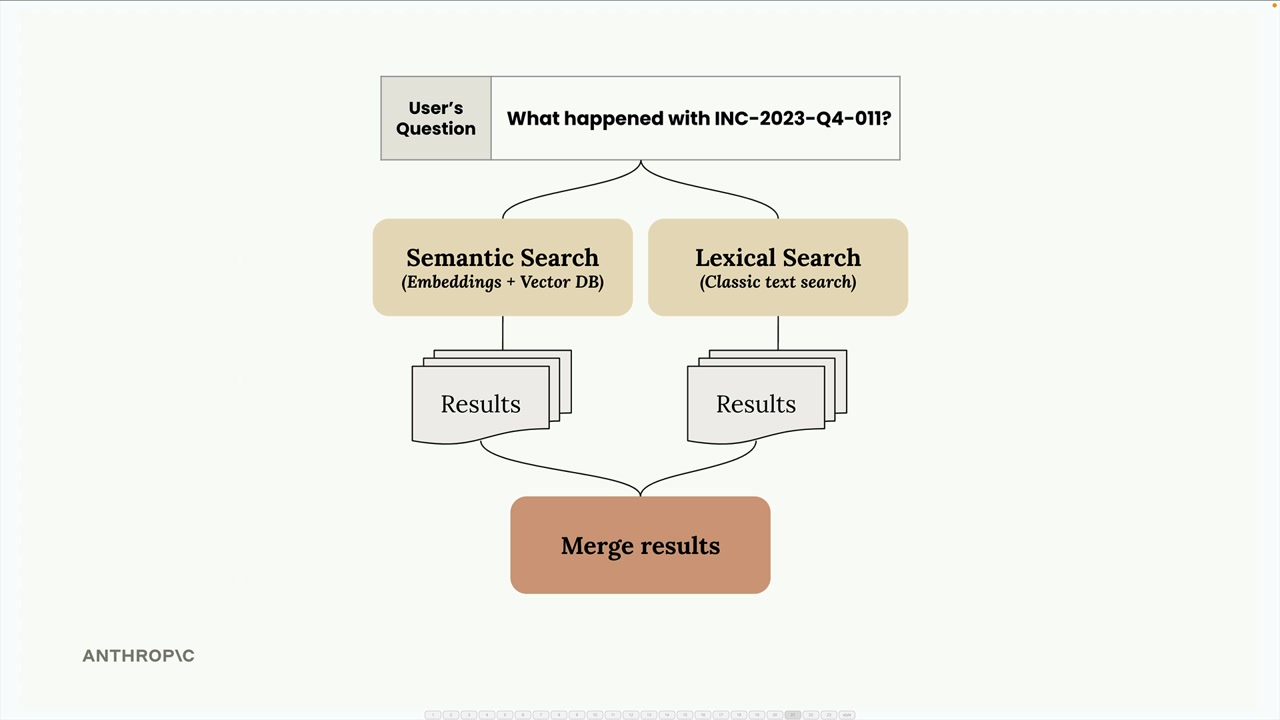 해결책은 의미 검색과 어휘 검색을 병렬로 실행한 다음 결과를 병합하는 것입니다. 이를 통해 두 가지 방식의 장점을 모두 활용할 수 있습니다: