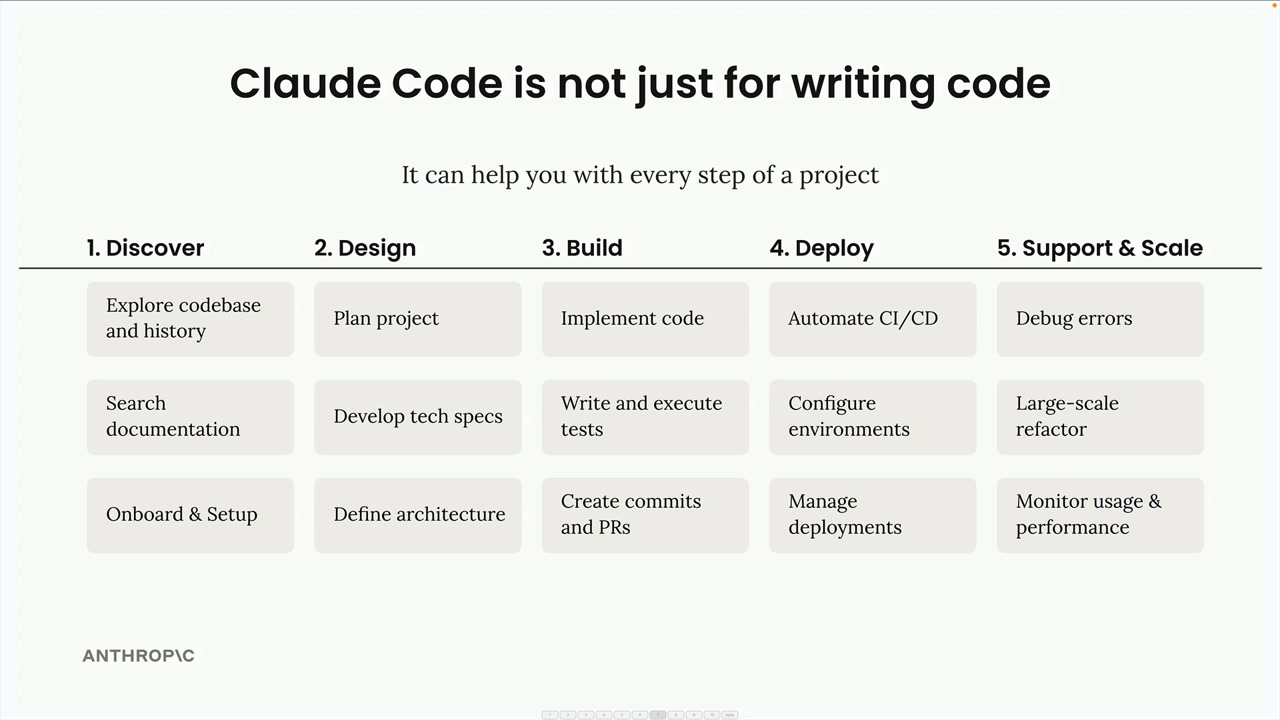 Claude Code는 단순한 코드 작성 도구가 아닙니다. 소프트웨어 프로젝트의 모든 단계에서 여러분과 함께 작업하도록 설계되었습니다. 초기 설정부터 배포 및 유지보수까지 모든 것을 처리할 수 있는 팀의 또 다른 엔지니어라고 생각하세요.
