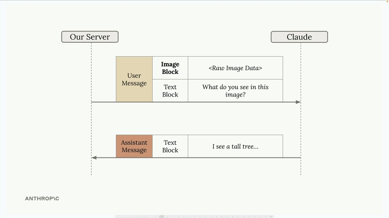 Claude에게 이미지를 전송하려면 사용자 메시지에 텍스트 블록과 함께 이미지 블록을 포함시킵니다. 구조는 다음과 같습니다: