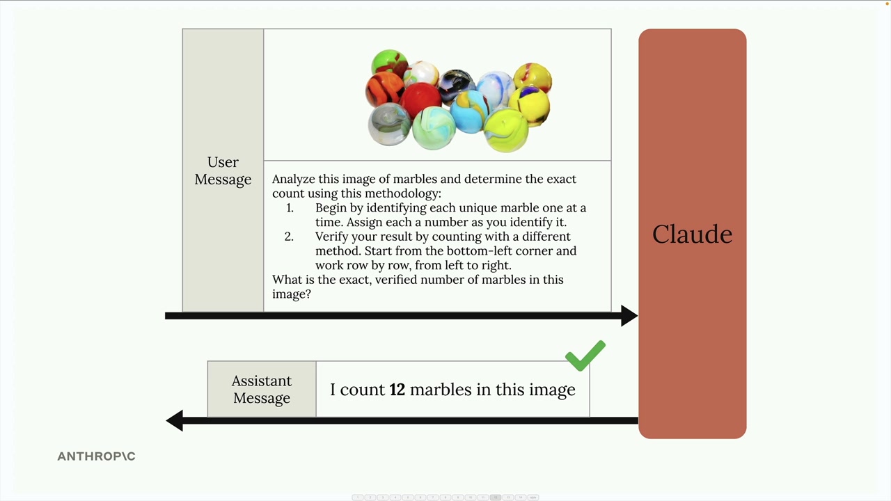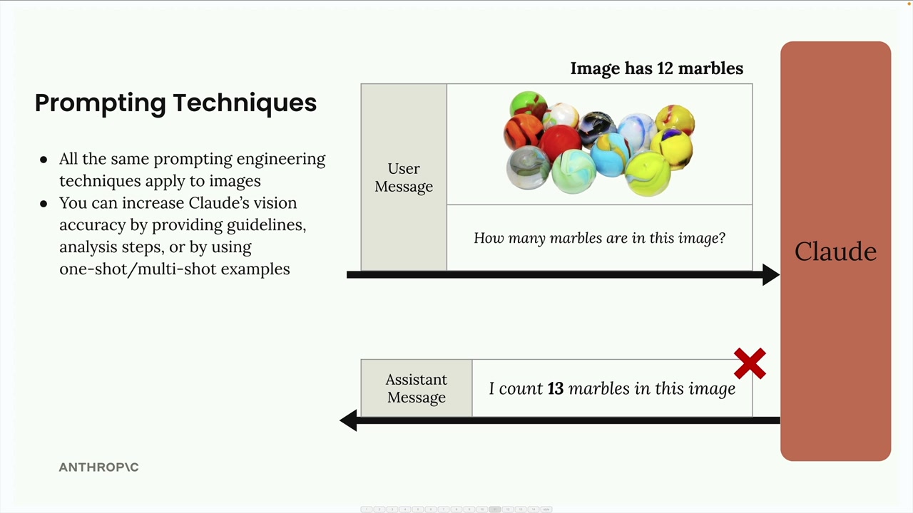 이미지에서 좋은 결과를 얻는 핵심은 텍스트에 사용하는 것과 동일한 프롬프트 엔지니어링 기법을 적용하는 것입니다. 단순한 프롬프트는 종종 좋지 않은 결과를 초래합니다. 예를 들어, "이 이미지에 구슬이 몇 개 있나요?"라고 물으면 잘못된 숫자를 반환할 수 있습니다.