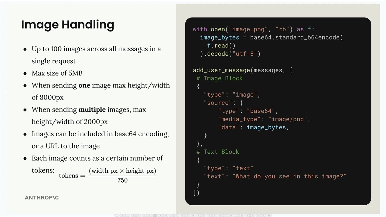 - 단일 요청 내 모든 메시지에 걸쳐 최대 100개의 이미지