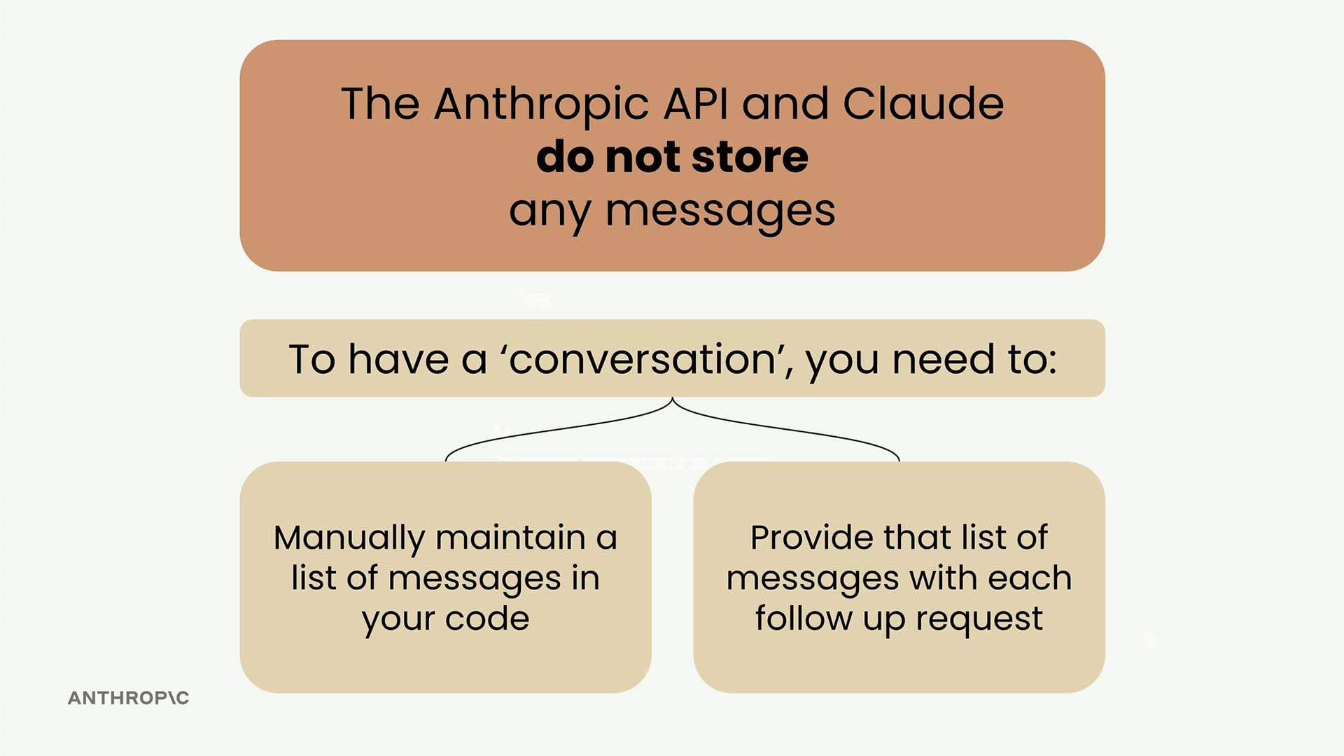 즉, Claude가 이전 메시지의 맥락을 기억하는 멀티턴 대화를 원한다면 대화 상태를 직접 관리해야 합니다.