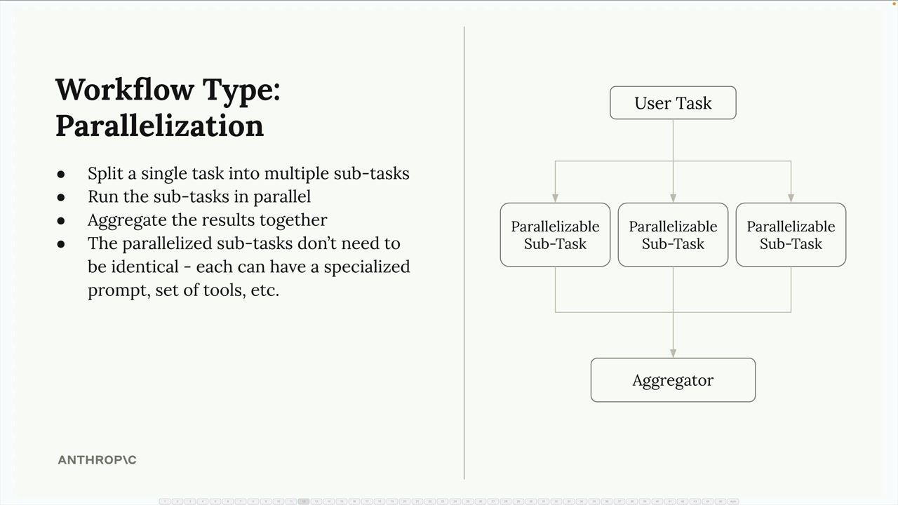 - 병렬화된 하위 작업이 동일할 필요는 없음 - 각각 특화된 프롬프트, 도구 세트, 또는 평가 기준을 가질 수 있습니다