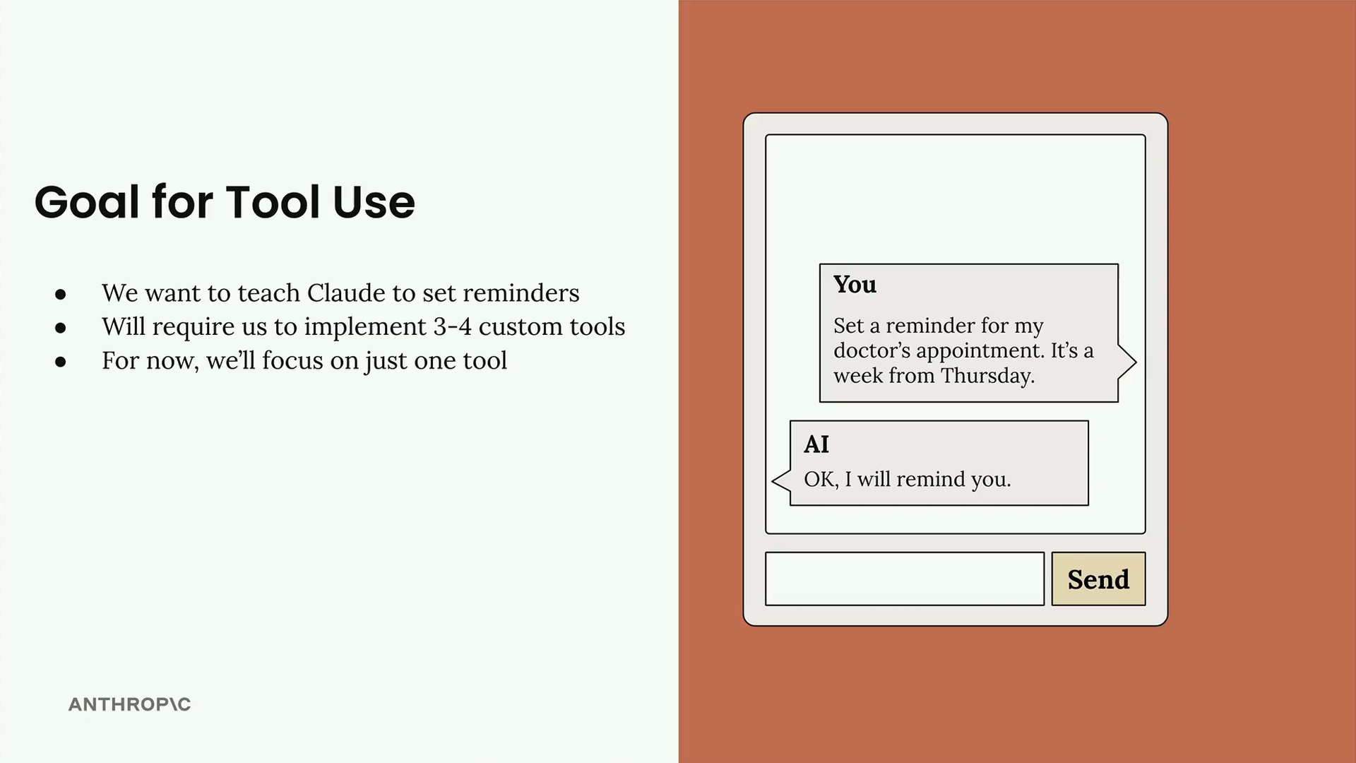 우리는 Claude가 미래 날짜에 대한 알림을 설정하는 방법을 배우는 실용적인 프로젝트를 만들 것입니다. 처음에는 간단하게 들릴 수 있지만, 커스텀 도구를 사용하여 해결할 몇 가지 흥미로운 과제들이 숨어 있습니다.