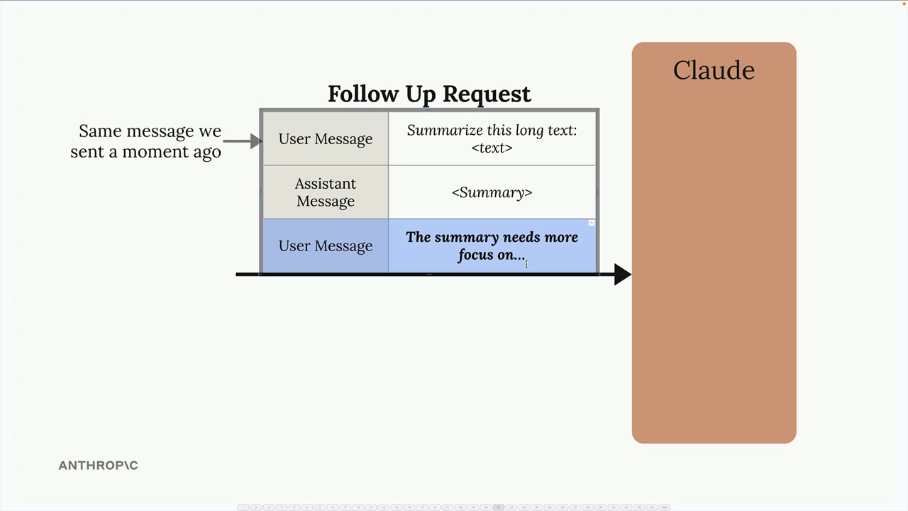이는 동일한 내용을 포함하는 후속 요청을 보낼 때 비효율적이 됩니다. 예를 들어, 동일한 긴 텍스트의 요약을 Claude에게 다듬어 달라고 요청하는 대화에서: