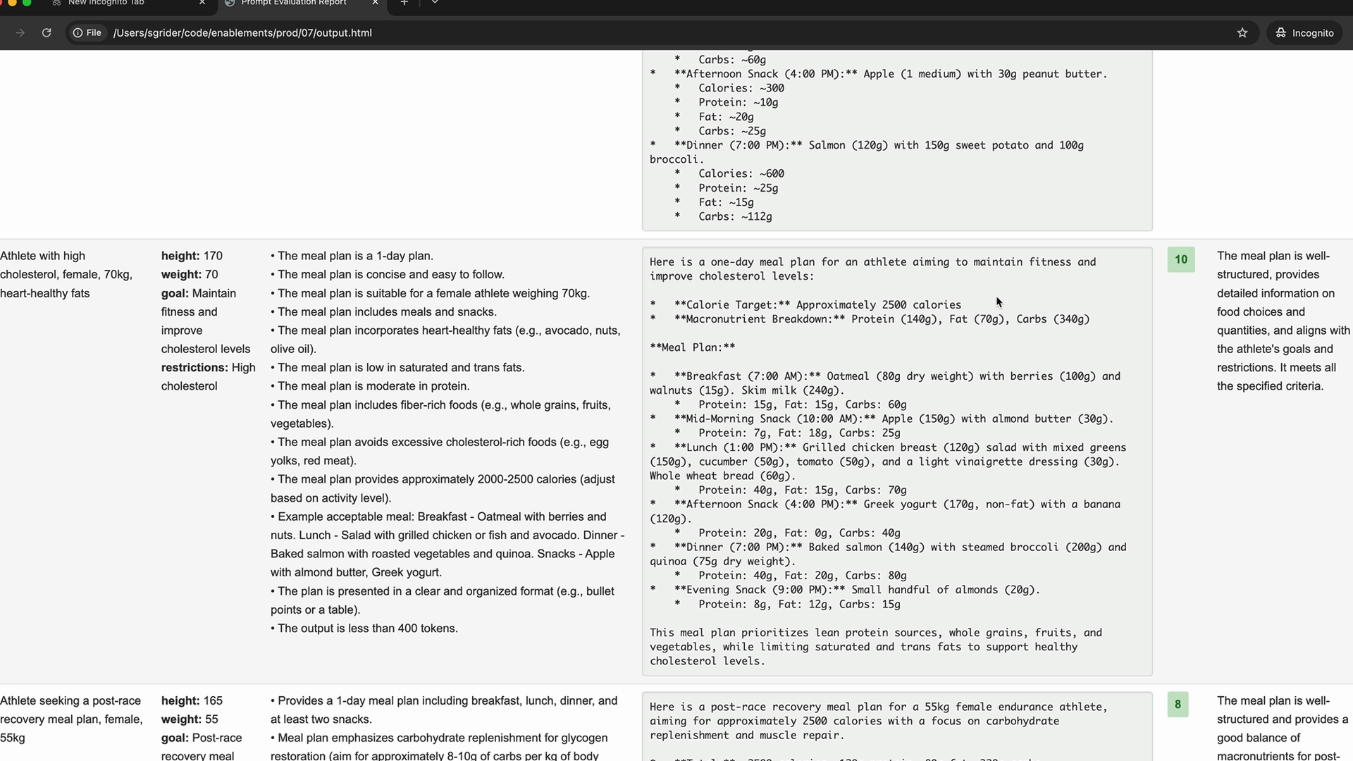 프롬프트 평가를 실행할 때, 예시로 활용할 가장 높은 점수의 출력물을 찾아보세요: