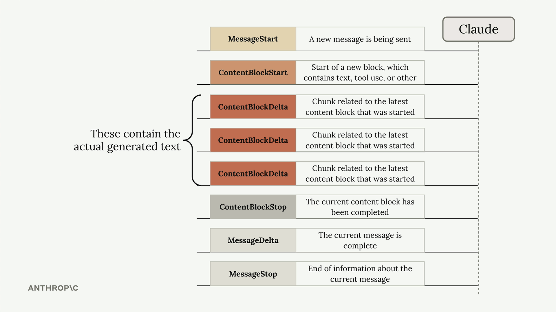 - ContentBlockDelta - 실제 생성된 텍스트의 청크
