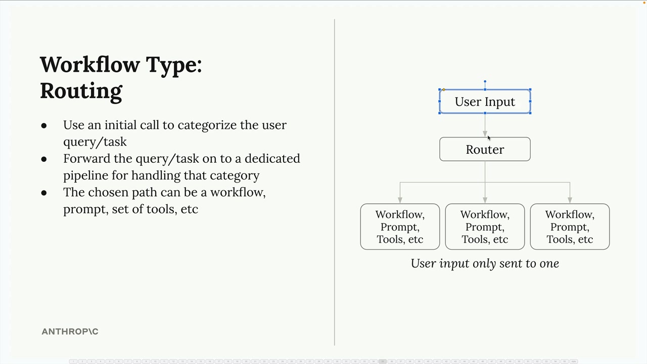 라우팅 워크플로우는 AI 애플리케이션에서 흔히 발생하는 문제를 해결합니다. 사용자 요청의 유형이 다양할 때 각각 다른 처리 방식이 필요합니다. 하나의 범용 프롬프트를 사용하는 대신, 들어오는 요청을 분류하여 전문화된 처리 파이프라인으로 라우팅할 수 있습니다.