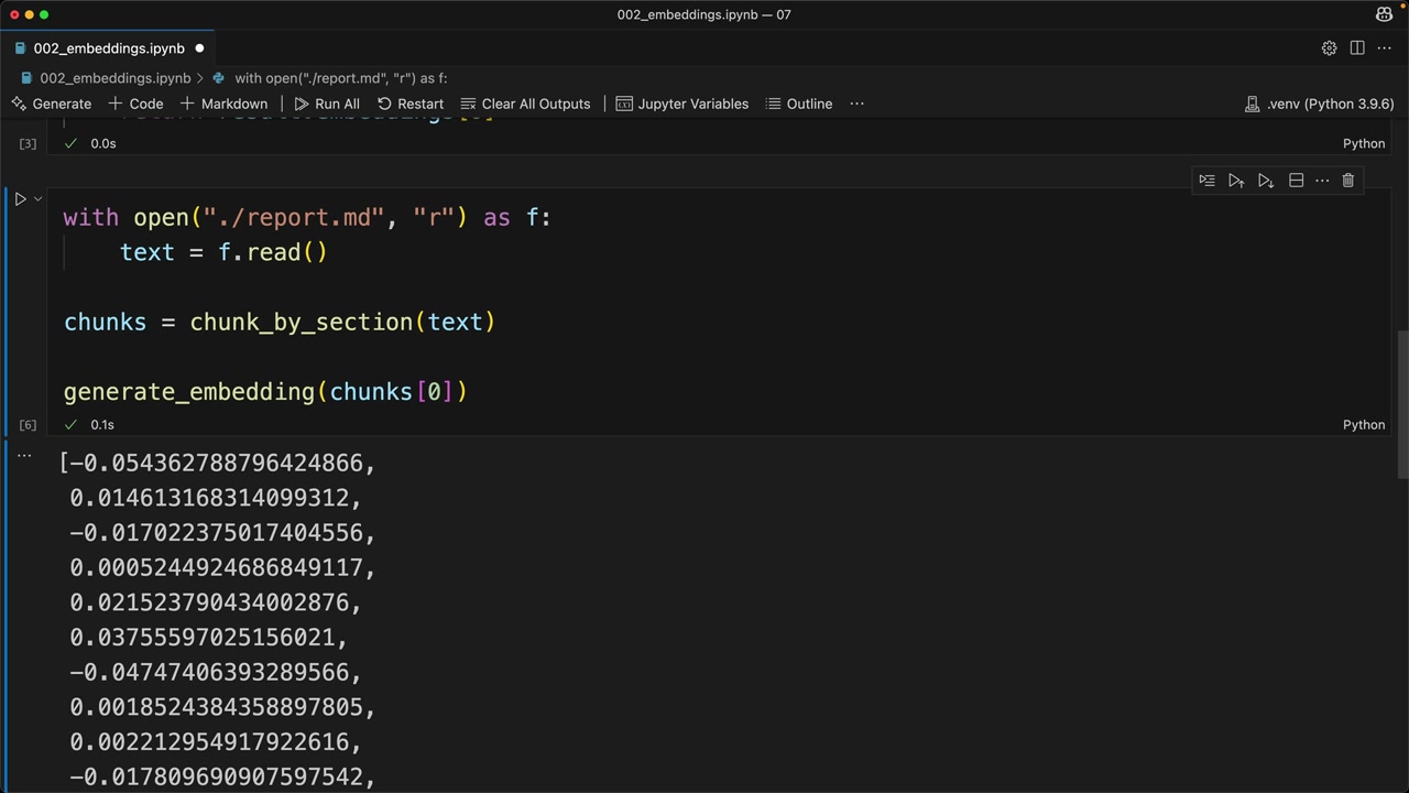 그런 다음 클라이언트를 설정하고 임베딩을 생성하는 함수를 만듭니다: