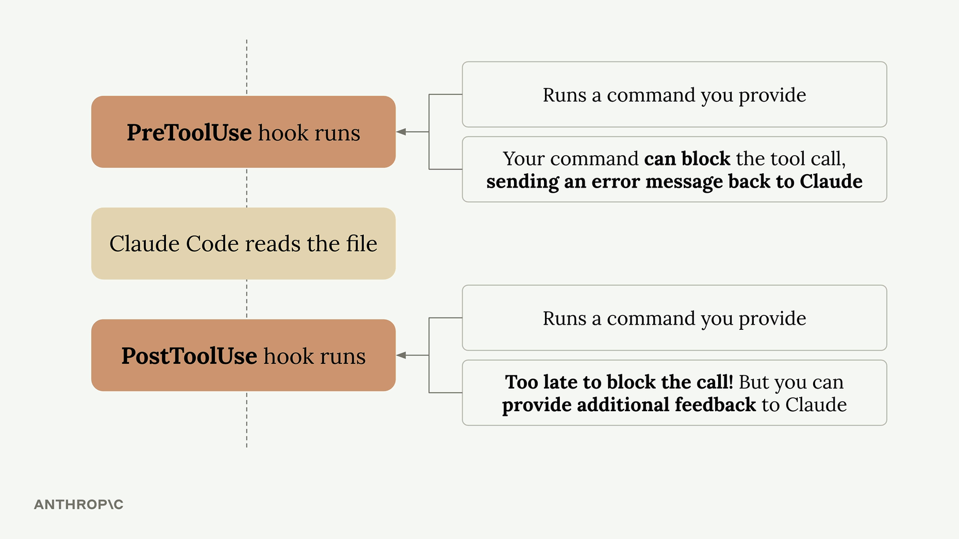 핵심은 훅을 통해 자신의 도구와 프로세스를 워크플로우에 통합하여 Claude Code의 기능을 확장할 수 있다는 점입니다. PreToolUse 훅은 Claude가 할 수 있는 작업을 제어하고, PostToolUse 훅은 Claude가 수행한 작업을 보완합니다.