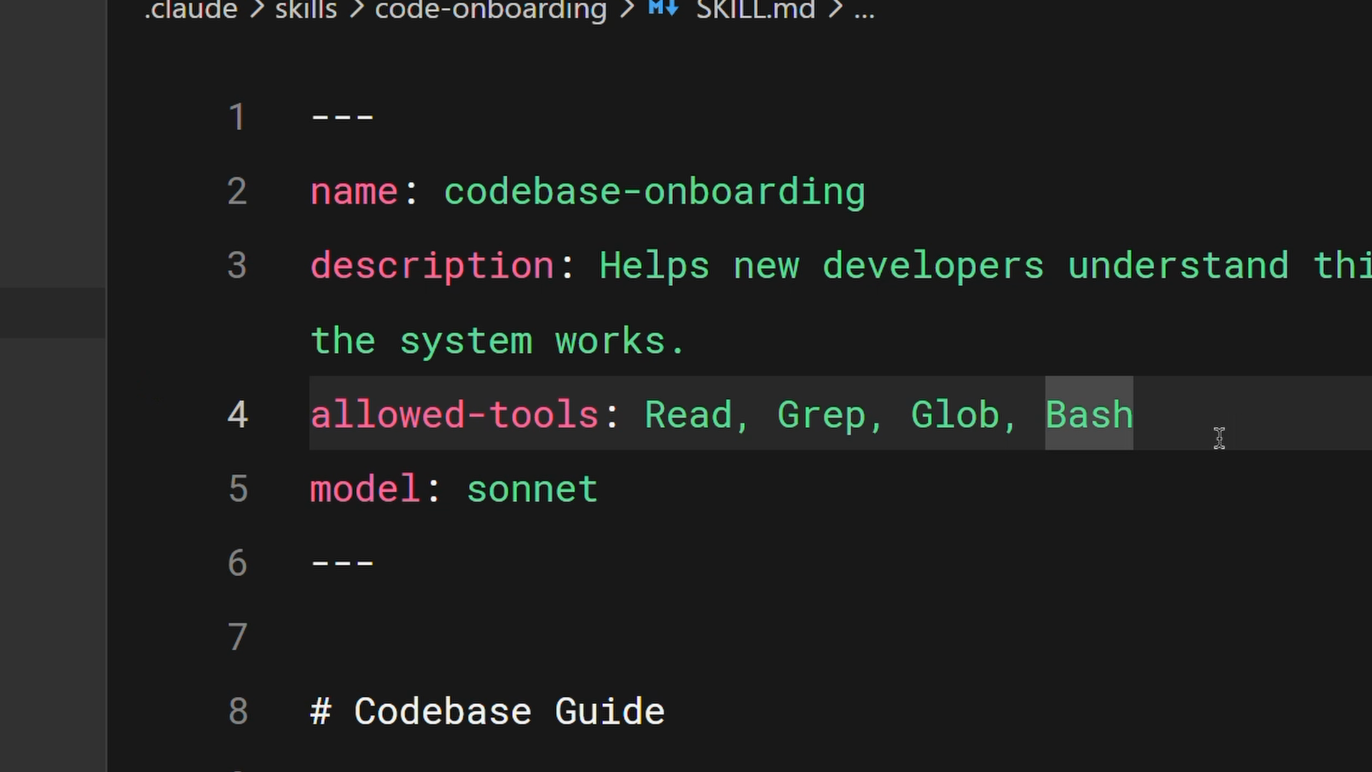 이 예에서 allowed-tools 필드는 Read, Grep, Glob, Bash로 설정되어 있습니다. 이 스킬이 활성화되면 Claude는 허가 없이 해당 도구만 사용할 수 있습니다 — 편집이나 쓰기는 불가합니다.