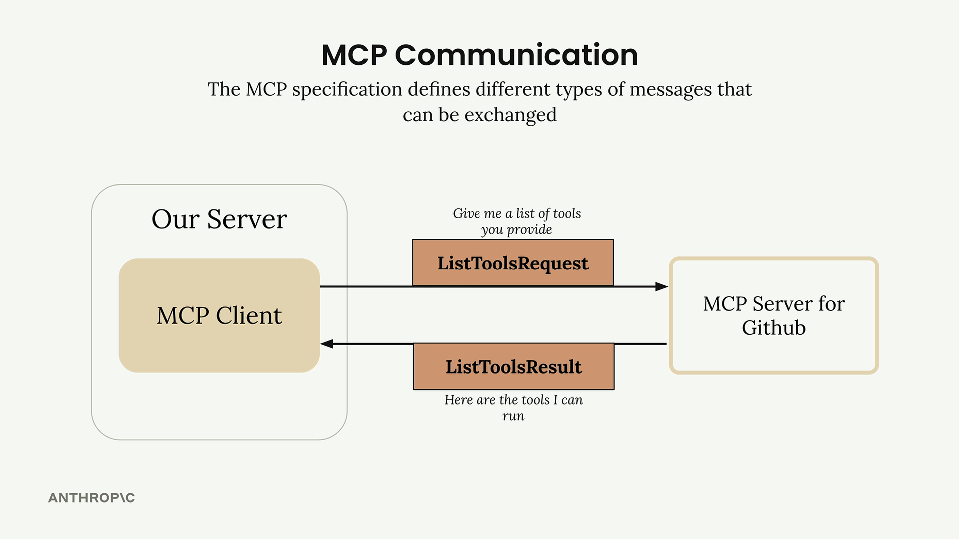 연결되면 클라이언트와 서버는 MCP 사양에 정의된 특정 메시지 유형을 교환합니다. 주로 다루게 될 메시지 유형은 다음과 같습니다: