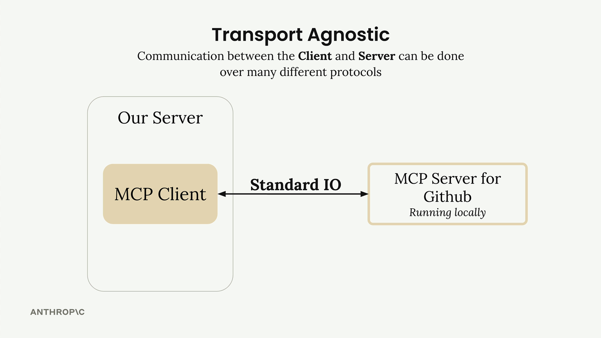 MCP의 핵심 강점 중 하나는 전송 프로토콜에 구애받지 않는다는 것입니다 - 설정에 따라 클라이언트와 서버가 다양한 프로토콜로 통신할 수 있다는 뜻입니다.