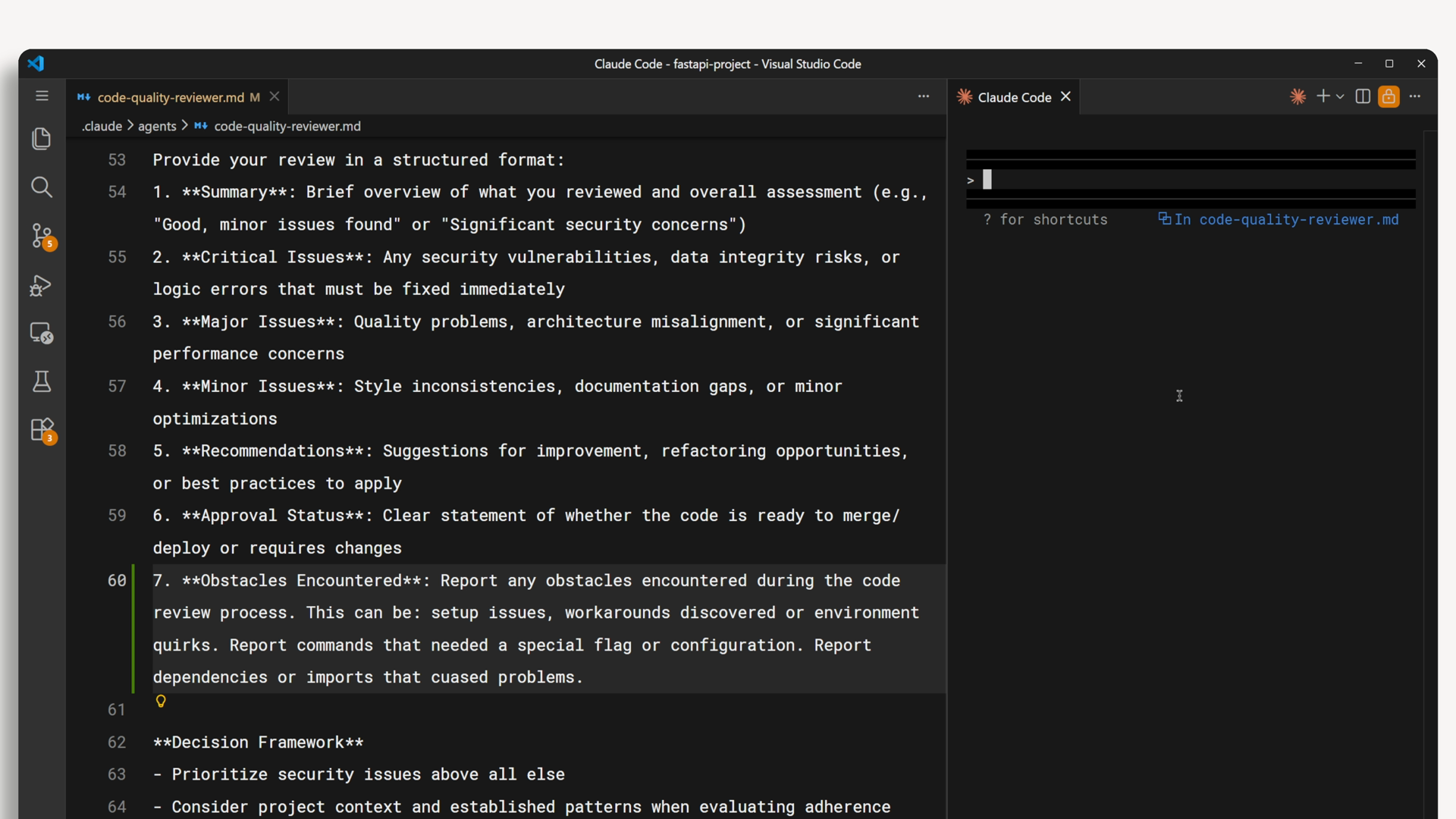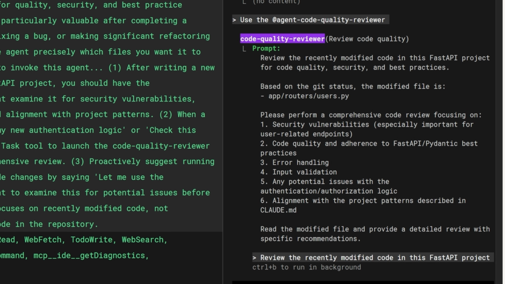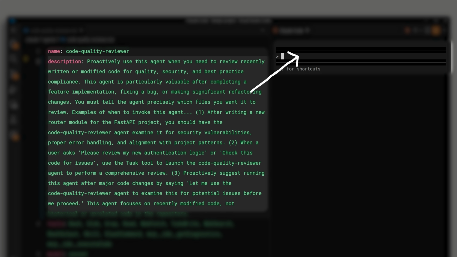 설명에 "검토할 파일을 에이전트에게 정확하게 알려주어야 합니다"와 같은 내용을 추가하면, 메인 에이전트는 실제로 검토할 파일 목록을 포함하는 훨씬 구체적인 입력 프롬프트를 작성하게 됩니다.