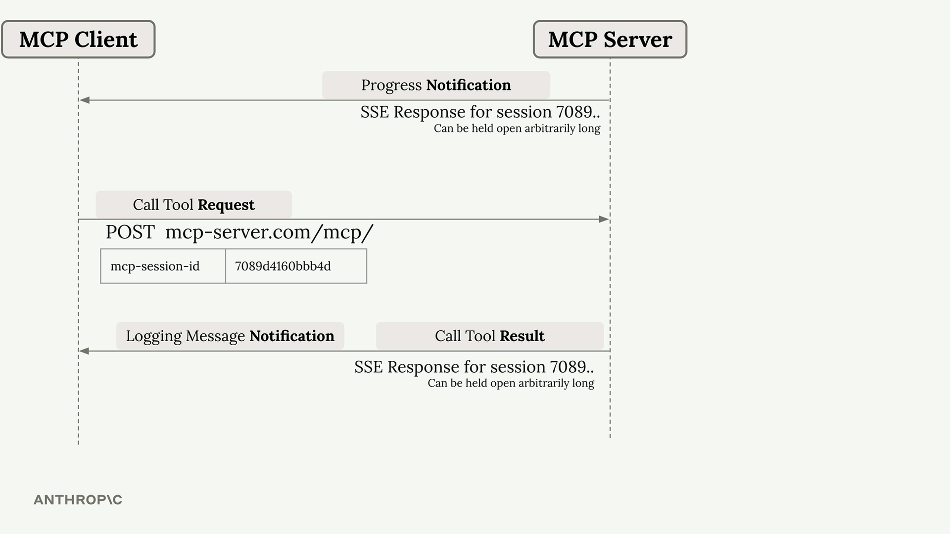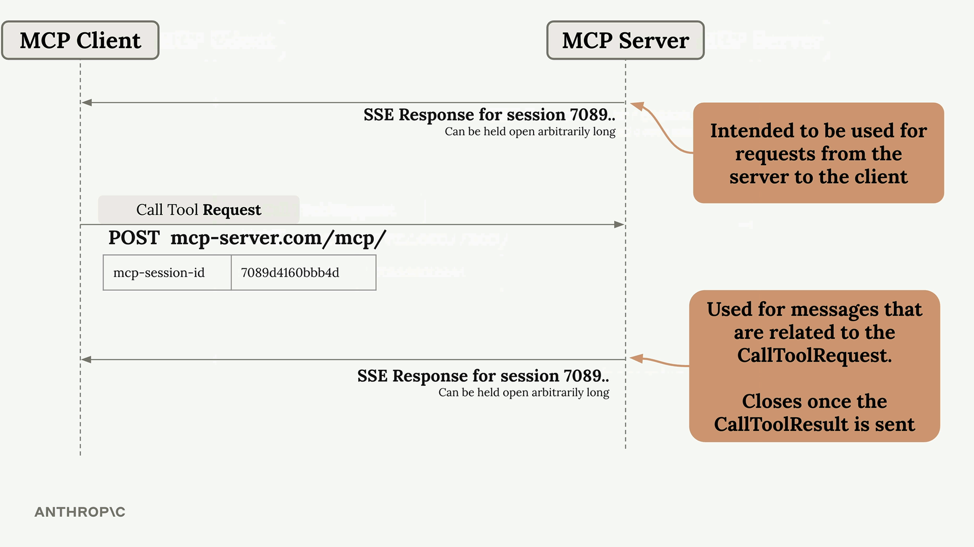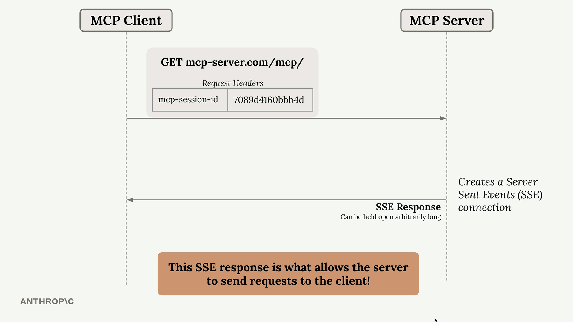 샘플링, 알림, 로깅과 같은 일부 MCP 기능은 서버가 클라이언트에 요청을 시작하는 것에 의존합니다. 그러나 HTTP는 클라이언트가 서버에 요청을 보내도록 설계되었지, 그 반대는 아닙니다. StreamableHTTP는 Server-Sent Events(SSE)를 사용한 똑똑한 우회 방법으로 이를 해결합니다.