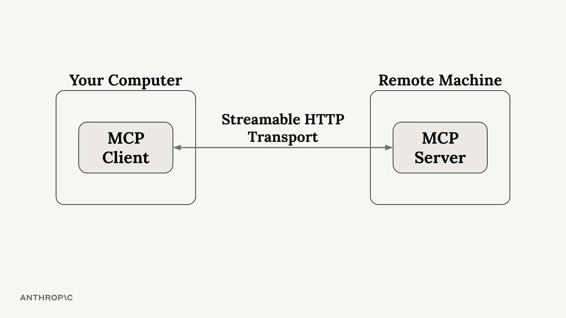 StreamableHTTP 전송 방식은 MCP 클라이언트가 HTTP 연결을 통해 원격으로 호스팅된 서버에 접속할 수 있게 해줍니다. 클라이언트와 서버가 같은 머신에 있어야 하는 표준 I/O 전송 방식과 달리, 이 전송 방식은 누구나 접근할 수 있는 공개 MCP 서버의 가능성을 열어줍니다.