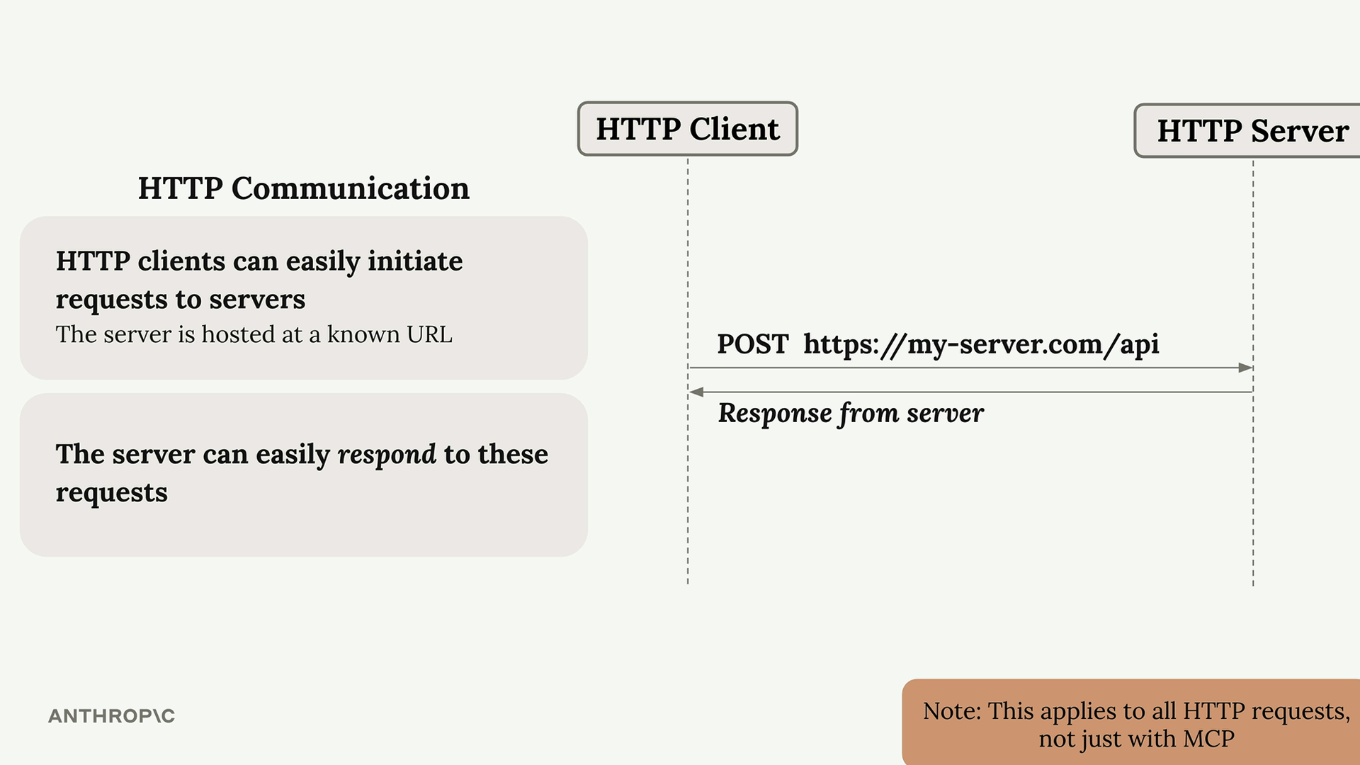 이러한 제한이 존재하는 이유를 이해하려면 HTTP 통신이 어떻게 작동하는지 살펴볼 필요가 있습니다. 표준 HTTP에서는: